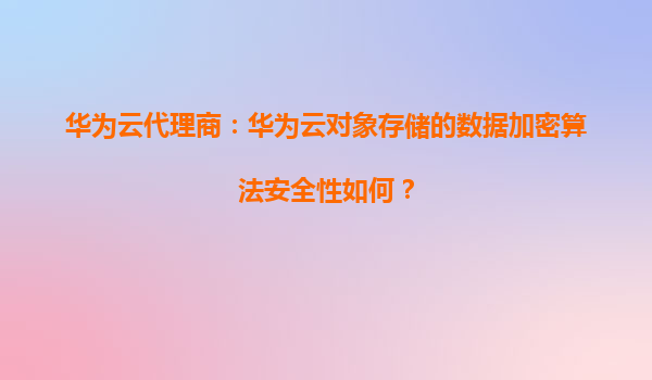2026-01-08華為云代理商:華為云對象存儲的數(shù)據(jù)加密算法安全性解析 在數(shù)字化時代,數(shù)據(jù)安全已成為企業(yè)核心競爭力的重要組成部分。華為云作為全球領(lǐng)先的云服務(wù)提供商,其對象存儲(OBS)服務(wù)憑借強(qiáng)大的數(shù)據(jù)加密能力,為用...