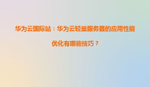 2026-01-08華為云國際站:華為云輕量服務(wù)器的應(yīng)用性能優(yōu)化技巧 引言 在當(dāng)今數(shù)字化時代,云計算已成為企業(yè)IT基礎(chǔ)設(shè)施的重要組成部分。華為云作為全球領(lǐng)先的云服務(wù)提供商之一,其輕量服務(wù)器(Lighthou...