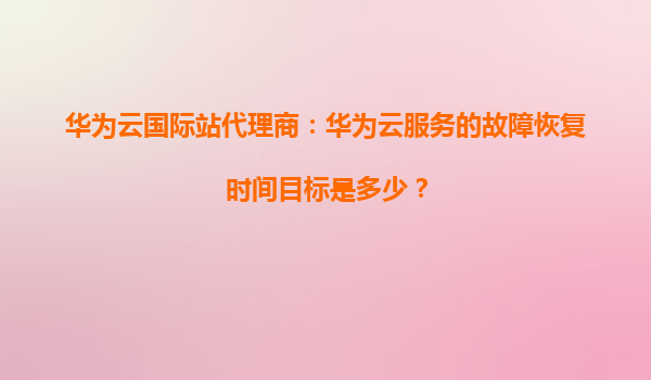 2026-01-08華為云國際站代理商:華為云服務(wù)的故障恢復(fù)時(shí)間目標(biāo)是多少? 隨著企業(yè)數(shù)字化轉(zhuǎn)型的加速,云服務(wù)的穩(wěn)定性和可靠性成為用戶選擇云服務(wù)提供商的重要考量因素。華為云作為全球領(lǐng)先的云服務(wù)提供商之一,其...