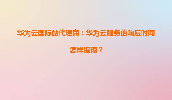 2026-01-08華為云國(guó)際站代理商:華為云服務(wù)的響應(yīng)時(shí)間怎樣縮短? 引言 在當(dāng)今數(shù)字化時(shí)代,云服務(wù)的響應(yīng)時(shí)間是衡量服務(wù)質(zhì)量的重要指標(biāo)之一。對(duì)于華為云國(guó)際站的代理商而言,如何有效縮短華為云服務(wù)的響應(yīng)時(shí)間,提升用...
