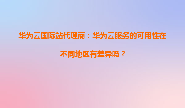 2026-01-08華為云國(guó)際站代理商:華為云服務(wù)的可用性在不同地區(qū)有差異嗎? 隨著全球數(shù)字化轉(zhuǎn)型的加速,云計(jì)算服務(wù)已成為企業(yè)IT基礎(chǔ)設(shè)施的核心組成部分。華為云作為全球領(lǐng)先的云服務(wù)提供商,憑借其強(qiáng)大的技術(shù)實(shí)力和全球化布...