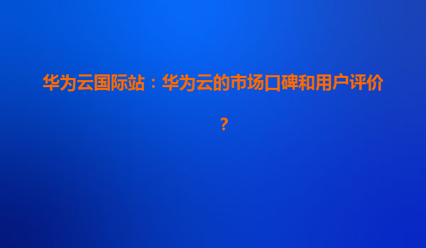 4008-020-360 華為云國際站:華為云的市場口碑和用戶評價深度解析 一、引言:華為云的全球化布局與市場定位 華為云作為華為集團(tuán)旗下的云計算服務(wù)品牌,自2017年正式成立以來...