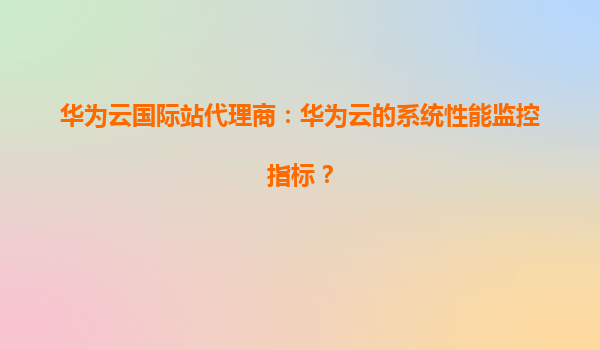 4008-020-360 華為云國(guó)際站代理商:華為云的系統(tǒng)性能監(jiān)控指標(biāo)詳解 一、系統(tǒng)性能監(jiān)控的核心意義 在云計(jì)算時(shí)代,系統(tǒng)性能監(jiān)控是保障業(yè)務(wù)穩(wěn)定運(yùn)行的關(guān)鍵環(huán)節(jié)。華為云作為全球領(lǐng)先的云服務(wù)提供商,其完善的系統(tǒng)性能監(jiān)控體...
