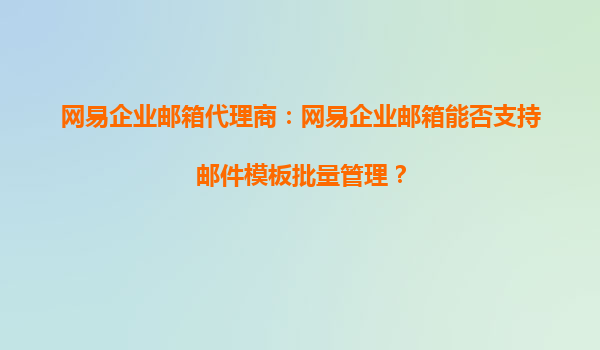 2025-09-16網(wǎng)易企業(yè)郵箱代理商解析:網(wǎng)易企業(yè)郵箱的郵件模板批量管理功能及優(yōu)勢 在當今快節(jié)奏的商業(yè)環(huán)境中,高效、便捷的企業(yè)郵箱系統(tǒng)對于提升企業(yè)溝通效率至關重要。作為國內領先的企業(yè)郵箱服務提供商,網(wǎng)易企業(yè)郵箱憑...