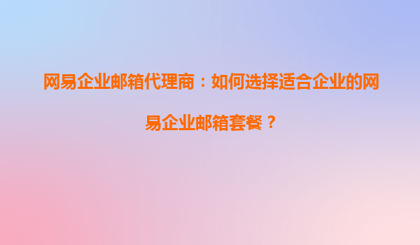 2025-09-16網(wǎng)易企業(yè)郵箱代理商:如何選擇適合企業(yè)的網(wǎng)易企業(yè)郵箱套餐? 一、網(wǎng)易企業(yè)郵箱簡介 網(wǎng)易企業(yè)郵箱是國內領先的企業(yè)級電子郵件服務,擁有超過20年的運營經(jīng)驗,服務覆蓋全球200多個國家和地區(qū)。憑借其穩(wěn)定的系...