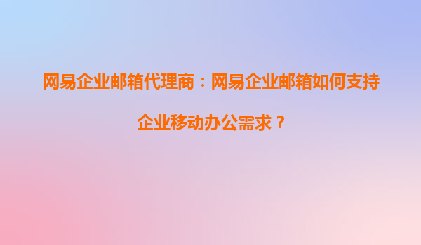 2025-09-16網(wǎng)易企業(yè)郵箱代理商:網(wǎng)易企業(yè)郵箱如何支持企業(yè)移動(dòng)辦公需求? 一、移動(dòng)辦公時(shí)代的企業(yè)需求 隨著數(shù)字化辦公的普及,企業(yè)對(duì)移動(dòng)辦公的需求日益增長(zhǎng)。員工需要隨時(shí)隨地處...