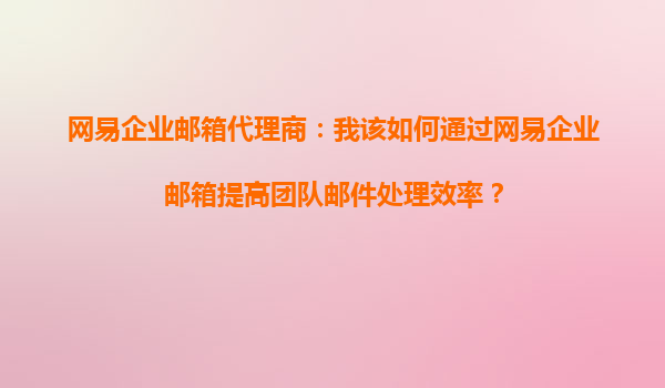 2025-09-16網(wǎng)易企業(yè)郵箱代理商:我該如何通過(guò)網(wǎng)易企業(yè)郵箱提高團(tuán)隊(duì)郵件處理效率? 作為現(xiàn)代企業(yè)溝通的重要工具,企業(yè)郵箱的效率和穩(wěn)定性直接影響到團(tuán)隊(duì)的工作效率。作為網(wǎng)易企業(yè)郵箱代理商,深知網(wǎng)易企業(yè)郵箱的強(qiáng)大功能如...