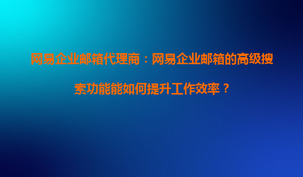 2025-09-16網(wǎng)易企業(yè)郵箱高級搜索功能:釋放效率的智能鑰匙 精準(zhǔn)定位信息,告別大海撈針 在日常工作中,郵件往往堆積如山,尋找關(guān)鍵信息如同大海撈針。網(wǎng)易企業(yè)郵箱的高級搜索功能支持多維條件組合,包括發(fā)件人、收件人、...