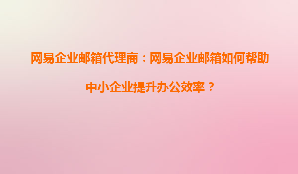 4008-020-360 網(wǎng)易企業(yè)郵箱代理商:網(wǎng)易企業(yè)郵箱如何幫助中小企業(yè)提升辦公效率? 一、引言 隨著數(shù)字化辦公的普及,中小企業(yè)對高效、安全的通信工具需求日益增長。網(wǎng)易企業(yè)郵箱作為國內(nèi)領(lǐng)先的企業(yè)級郵箱服務(wù)之一,憑借其穩(wěn)定的性...