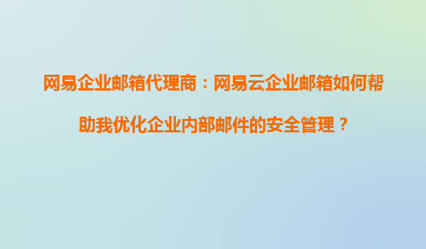 2025-09-16網(wǎng)易企業(yè)郵箱代理商:網(wǎng)易企業(yè)郵箱能提供哪些獨特的安全功能? 在當(dāng)今數(shù)字化時代,企業(yè)郵箱不僅是內(nèi)外溝通的重要工具,更是數(shù)據(jù)安全的關(guān)鍵防線。作為國內(nèi)領(lǐng)先的企業(yè)郵箱服務(wù)商之一,網(wǎng)易企業(yè)郵箱憑借...