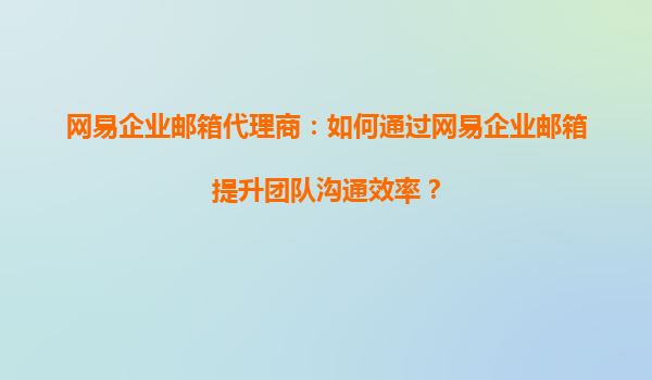 2025-09-16網(wǎng)易企業(yè)郵箱代理商:如何通過網(wǎng)易企業(yè)郵箱提升團隊溝通效率? 在當(dāng)今快節(jié)奏的商業(yè)環(huán)境中,高效的團隊溝通是企業(yè)成功的關(guān)鍵因素之一。作為網(wǎng)易企業(yè)郵箱的代理商,我們深知一款優(yōu)秀的企業(yè)郵箱不僅能提升郵件...