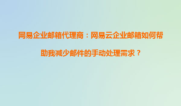 2025-09-16網(wǎng)易企業(yè)郵箱代理商:網(wǎng)易云企業(yè)郵箱如何幫助我減少郵件的手動處理需求? 在快節(jié)奏的現(xiàn)代商業(yè)環(huán)境中,處理大量電子郵件可能成為一項繁瑣的任務。手動處理郵件不僅耗時,還容易出錯。網(wǎng)易企業(yè)郵箱(網(wǎng)易云企...