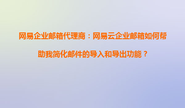 2025-09-16網(wǎng)易企業(yè)郵箱代理商:網(wǎng)易云企業(yè)郵箱如何幫助我簡化郵件的導入和導出功能? 一、引言 隨著企業(yè)信息化建設的不斷深入,電子郵件已成為企業(yè)內部和對外溝通的重要工具。然而,許多企業(yè)在使用郵箱系統(tǒng)時經常會遇到...