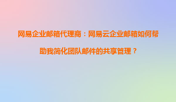 2025-09-16網(wǎng)易云企業(yè)郵箱如何幫助簡化團隊郵件的共享管理 在現(xiàn)代企業(yè)的日常運營中,團隊協(xié)作和郵件管理是不可或缺的一部分。高效的郵件管理不僅能提升溝通效率,還能確保信息的安全性和可追溯性。作為網(wǎng)易企業(yè)郵箱的代理商,...