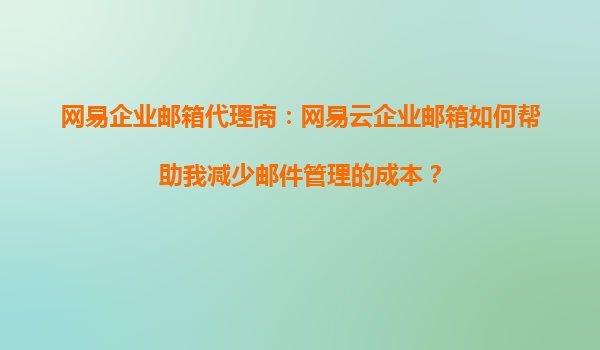 2025-09-06網(wǎng)易企業(yè)郵箱代理商:網(wǎng)易云企業(yè)郵箱如何幫助我減少郵件管理的成本? 一、為什么選擇網(wǎng)易云企業(yè)郵箱? 在數(shù)字化的商業(yè)環(huán)境中,電子郵件已成為企業(yè)日常溝通的重要工具。然而,隨著企業(yè)規(guī)模的擴(kuò)大,郵件管理的...