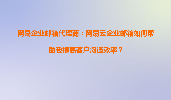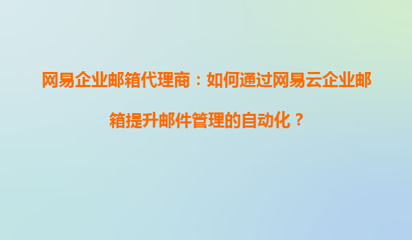 2025-09-04網(wǎng)易企業(yè)郵箱代理商:使用網(wǎng)易云企業(yè)郵箱如何優(yōu)化團(tuán)隊(duì)的郵件響應(yīng)時(shí)間? 在當(dāng)今快節(jié)奏的商業(yè)環(huán)境中,高效的郵件溝通是企業(yè)運(yùn)營的基礎(chǔ)。作為國內(nèi)領(lǐng)先的企業(yè)郵箱服務(wù)商,網(wǎng)易企業(yè)郵箱為企業(yè)提供安全穩(wěn)定的郵件解決方...