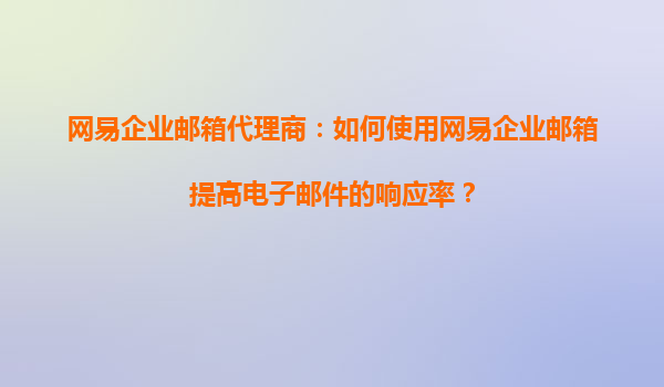 2025-09-03如何使用網(wǎng)易企業(yè)郵箱提高電子郵件的響應(yīng)率? 在現(xiàn)代商業(yè)環(huán)境中,電子郵件是企業(yè)日常溝通的重要工具。然而,許多企業(yè)發(fā)現(xiàn)郵件的響應(yīng)率并不高,嚴(yán)重影響了工作效率和客戶(hù)滿(mǎn)意度。作為網(wǎng)易企業(yè)郵箱代理商,我們深...