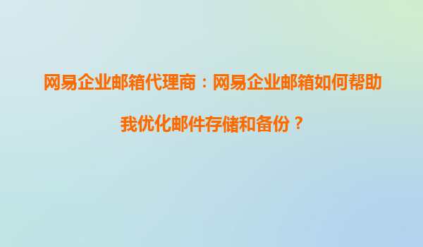 2025-09-02網(wǎng)易企業(yè)郵箱代理商:網(wǎng)易企業(yè)郵箱如何幫助我優(yōu)化郵件存儲(chǔ)和備份? 在當(dāng)今數(shù)字化辦公環(huán)境中,高效穩(wěn)定的企業(yè)郵箱系統(tǒng)已成為企業(yè)運(yùn)營(yíng)的核心工具之一。作為國(guó)內(nèi)領(lǐng)先的企業(yè)郵箱服務(wù)提供商,網(wǎng)易企業(yè)郵箱...