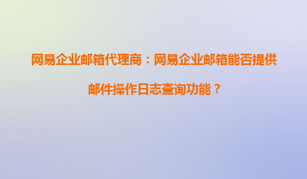 2025-08-30網(wǎng)易企業(yè)郵箱的郵件操作日志查詢功能 作為國內(nèi)領(lǐng)先的企業(yè)郵箱服務(wù)提供商,網(wǎng)易企業(yè)郵箱憑借其穩(wěn)定、安全、高效的特性,贏得了眾多企業(yè)的青睞。其中,郵件操作日志查詢功能是企業(yè)用戶非常關(guān)注的一項(xiàng)服務(wù)。那么,網(wǎng)易...