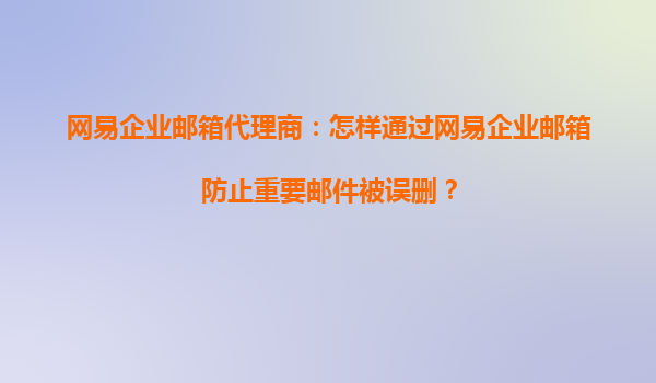 2025-08-30網(wǎng)易企業(yè)郵箱代理商:怎樣通過網(wǎng)易企業(yè)郵箱防止重要郵件被誤刪? 在日常工作中,郵件是企業(yè)溝通的重要工具之一。然而,誤刪重要郵件的情況時(shí)有發(fā)生,可能導(dǎo)致信息丟失、工作延誤甚至法律風(fēng)險(xiǎn)。作為網(wǎng)易企業(yè)郵箱...