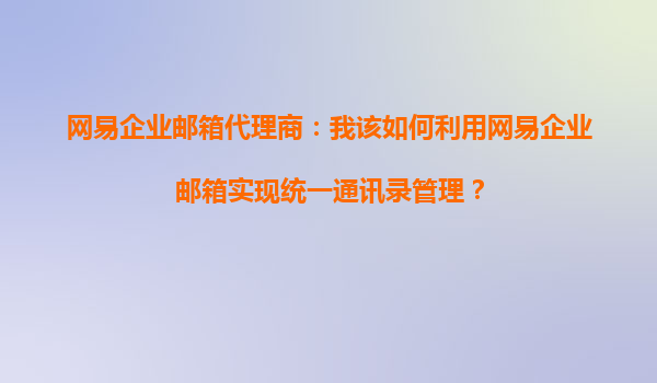 4008-020-360 網(wǎng)易企業(yè)郵箱代理商:我該如何利用網(wǎng)易企業(yè)郵箱實(shí)現(xiàn)統(tǒng)一通訊錄管理? 在當(dāng)今快節(jié)奏的商業(yè)環(huán)境中,高效的內(nèi)部溝通是企業(yè)成功的關(guān)鍵因素之一。作為網(wǎng)易企業(yè)郵箱的代理商,我們深知統(tǒng)一通訊錄管理對于提...