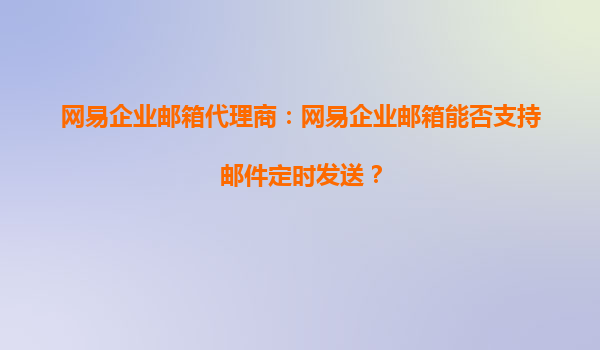 2025-08-30網(wǎng)易企業(yè)郵箱代理商:網(wǎng)易企業(yè)郵箱能否支持郵件定時(shí)發(fā)送? 在現(xiàn)代商務(wù)溝通中,郵件的時(shí)效性往往至關(guān)重要。無論是跨時(shí)區(qū)協(xié)作、錯(cuò)峰發(fā)送以提高打開率,還是避免非工作時(shí)間打擾客戶,郵件定時(shí)發(fā)送功能都成為企業(yè)郵...