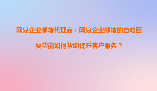 2025-08-27網(wǎng)易企業(yè)郵箱代理商:網(wǎng)易企業(yè)郵箱的自動回復(fù)功能如何幫助提升客戶服務(wù)? 一、引言 在當(dāng)今快節(jié)奏的商業(yè)環(huán)境中,高效的客戶服務(wù)是企業(yè)成功的關(guān)鍵因素之一。網(wǎng)易企業(yè)郵箱作為國內(nèi)領(lǐng)先的企業(yè)郵箱服務(wù)...