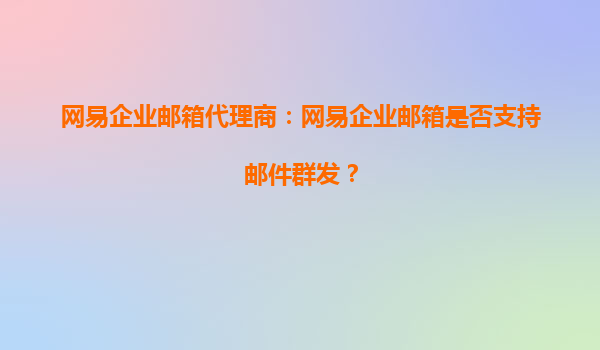 4008-020-360 網(wǎng)易企業(yè)郵箱代理商:網(wǎng)易企業(yè)郵箱是否支持郵件群發(fā)? 在當(dāng)今數(shù)字化辦公環(huán)境中,企業(yè)郵箱不僅是溝通工具,更是高效協(xié)作的核心平臺。作為國內(nèi)領(lǐng)先的企業(yè)郵箱服務(wù)商,網(wǎng)易企業(yè)郵箱憑借穩(wěn)定、安全、智能的特性...