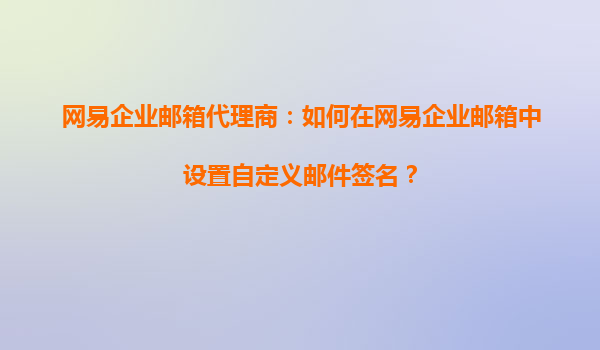 2025-08-26網(wǎng)易企業(yè)郵箱代理商:如何在網(wǎng)易企業(yè)郵箱中設(shè)置自定義郵件簽名? 一、網(wǎng)易企業(yè)郵箱的優(yōu)勢(shì) 網(wǎng)易企業(yè)郵箱作為國內(nèi)領(lǐng)先的企業(yè)級(jí)郵箱服務(wù)提供商,憑借其穩(wěn)定、安全、高效的特點(diǎn),深受企業(yè)用戶的信賴。以下是網(wǎng)...
