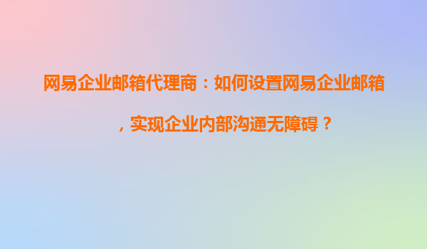 2025-08-26網(wǎng)易企業(yè)郵箱代理商:如何設(shè)置網(wǎng)易企業(yè)郵箱,實(shí)現(xiàn)企業(yè)內(nèi)部溝通無(wú)障礙? 在當(dāng)今快節(jié)奏的商業(yè)環(huán)境中,高效的企業(yè)內(nèi)部溝通是提升團(tuán)隊(duì)協(xié)作和業(yè)務(wù)發(fā)展的關(guān)鍵。網(wǎng)易企業(yè)郵箱作為國(guó)內(nèi)領(lǐng)先的企業(yè)郵箱服務(wù)提供商,憑借其...