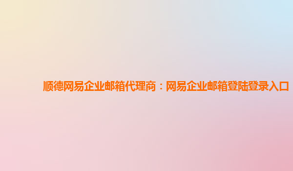 2024-01-10順德網易企業郵箱代理商:網易企業郵箱登陸登錄入口 在當今信息化時代,企業郵件的重要性不言而喻。為了滿足企業對安全、穩定和高效郵件服務的需求,網易企業郵箱成為了許多企業首選的解決方案。 作為網易企業郵箱...