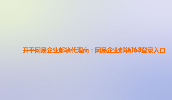 2024-01-10開平網易企業郵箱代理商:網易企業郵箱163登錄入口 網易企業郵箱是國內領先的企業郵箱品牌,提供全面、專業的電子郵件解決方案。作為網易企業郵箱的代理商,我們為用戶提供便捷、高效的郵箱服務,幫助企業實現...
