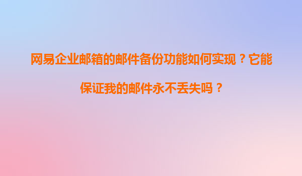 2025-11-17網(wǎng)易企業(yè)郵箱的郵件備份功能實(shí)現(xiàn)與郵件安全保障解析 一、網(wǎng)易企業(yè)郵箱的郵件備份功能實(shí)現(xiàn)機(jī)制 網(wǎng)易企業(yè)郵箱作為國(guó)內(nèi)領(lǐng)先的企業(yè)級(jí)郵件服務(wù)提供商,其郵件備份功能設(shè)計(jì)以高可靠性和易用性為核...