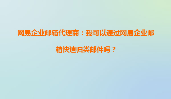 2025-10-05網易企業(yè)郵箱代理商:我可以通過網易企業(yè)郵箱快速歸類郵件嗎? 在當今快節(jié)奏的商業(yè)環(huán)境中,高效的郵件管理是企業(yè)運營的關鍵。作為網易企業(yè)郵箱的代理商,我們經常被客戶詢問:“我可以通過網易企業(yè)郵箱快速歸類...