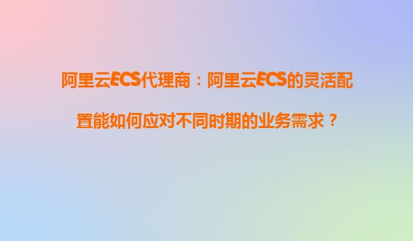 阿里云ecs代理商:阿里云ECS的靈活配置能如何應對不同時期的業(yè)務需求?