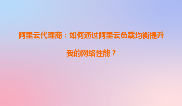 2025-09-16阿里云代理商:如何通過阿里云負(fù)載均衡提升我的網(wǎng)絡(luò)性能? 一、阿里云負(fù)載均衡的核心價(jià)值與網(wǎng)絡(luò)性能優(yōu)化 作為阿里云代理商,我們深刻理解企業(yè)客戶對(duì)網(wǎng)絡(luò)性能的高要求。阿里云負(fù)載均衡(SLB)...