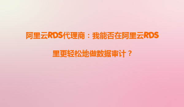 2025-10-06阿里云RDS代理商:我能否在阿里云RDS里更輕松地做數(shù)據(jù)審計(jì)? 引言:數(shù)據(jù)審計(jì)的重要性與挑戰(zhàn) 在當(dāng)今數(shù)字化時(shí)代,數(shù)據(jù)已成為企業(yè)最寶貴的資產(chǎn)之一。數(shù)據(jù)審計(jì)作為保障數(shù)據(jù)安全、合規(guī)運(yùn)營(yíng)的重要手段,越來越受...