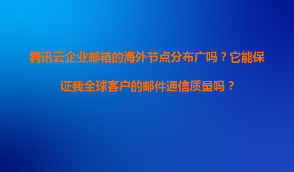 2025-11-23騰訊云企業(yè)郵箱的海外節(jié)點(diǎn)分布及全球郵件通信質(zhì)量保障 一、騰訊云企業(yè)郵箱的海外節(jié)點(diǎn)分布廣度分析 騰訊云作為中國領(lǐng)先的云計(jì)算服務(wù)提供商,在全球范圍內(nèi)建立了廣泛的數(shù)據(jù)中心網(wǎng)絡(luò)。目前,騰訊云企業(yè)郵箱依...