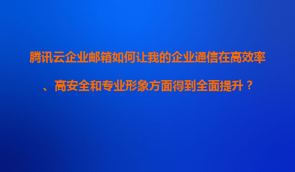 4008-020-360 騰訊云企業(yè)郵箱:賦能企業(yè)通信的高效率、高安全與專業(yè)形象 引言 在數(shù)字化時(shí)代,企業(yè)郵箱不僅是內(nèi)部溝通的橋梁,更是對外展示專業(yè)形象的重要窗口。騰訊云企業(yè)郵...