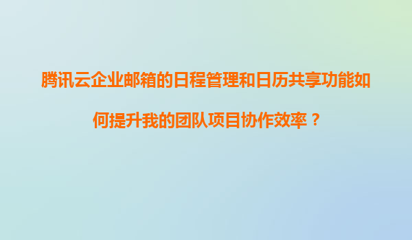 2025-11-22騰訊云企業(yè)郵箱的日程管理與日歷共享如何提升團(tuán)隊(duì)項(xiàng)目協(xié)作效率 引言 在現(xiàn)代企業(yè)協(xié)作中,高效的日程管理和信息同步是項(xiàng)目成功的關(guān)鍵因素之一。騰訊云企業(yè)郵箱作為一款專業(yè)的企業(yè)級郵件服務(wù),其內(nèi)置的日程管...