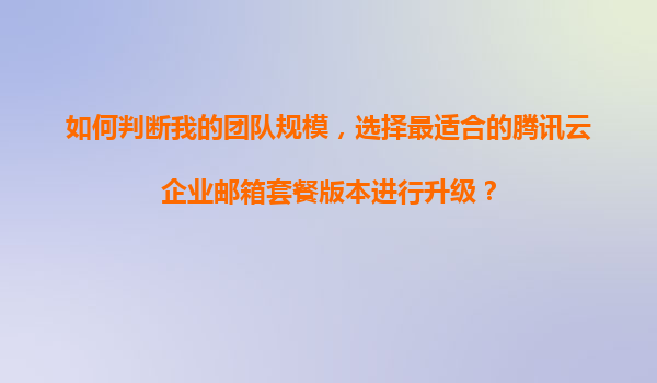2025-11-22如何判斷團隊規(guī)模,選擇最適合的騰訊云企業(yè)郵箱套餐版本進行升級? 一、明確團隊規(guī)模與需求 在選擇騰訊云企業(yè)郵箱套餐前,需先評估團隊的實際規(guī)模和使用需求: ...