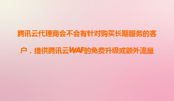 2025-11-22騰訊云代理商是否會為長期服務客戶提供WAF免費升級或額外流量?深度解析合作優(yōu)勢 一、騰訊云代理商的服務模式與價值 作為騰訊云生態(tài)體系的重要一環(huán),代理商在客戶服務中扮演著關鍵角色。不同于直接購買,通...