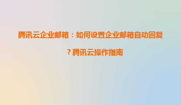 2025-04-01騰訊云企業(yè)郵箱自動回復(fù)設(shè)置指南 一、自動回復(fù)功能的核心價值 在現(xiàn)代化辦公場景中,企業(yè)郵箱自動回復(fù)功能已成為提升客戶服務(wù)效率的關(guān)鍵工具。通過智能響應(yīng)機制,可在非工作時間自動告知客戶郵件處理時...