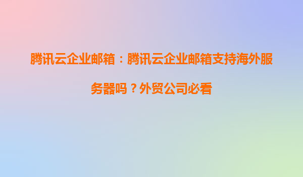 2025-04-01騰訊云企業(yè)郵箱:外貿(mào)公司拓展海外市場的可靠伙伴 一、騰訊云企業(yè)郵箱是否支持海外服務(wù)器? 騰訊云企業(yè)郵箱憑借其全球化服務(wù)器部署,為外貿(mào)企業(yè)提供無縫銜接的海外通信服務(wù)。其核心優(yōu)勢包括: ...