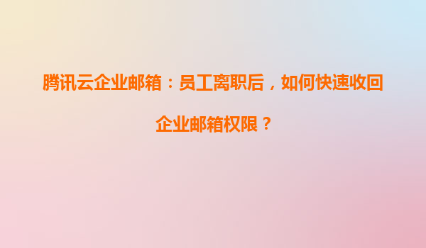 4008-020-360 騰訊云企業(yè)郵箱:員工離職后如何快速收回企業(yè)郵箱權(quán)限? 一、員工離職賬號(hào)管理的重要性 在企業(yè)日常運(yùn)營中,員工離職是常見現(xiàn)象。若未能及時(shí)處理離職員工的郵箱權(quán)限,可能導(dǎo)致敏感數(shù)據(jù)泄...