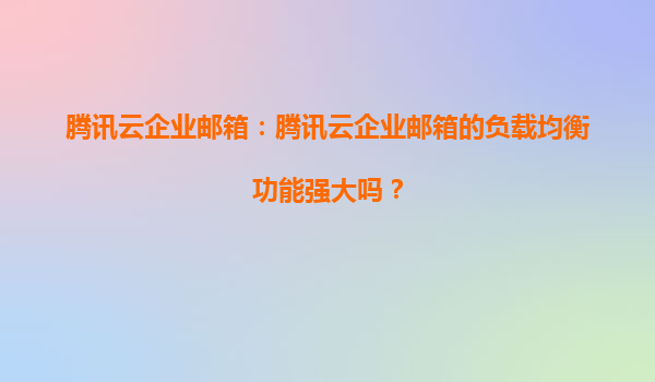 2025-04-01騰訊云企業(yè)郵箱:負載均衡功能的強大之處與生態(tài)優(yōu)勢 一、企業(yè)郵箱負載均衡的重要性 在數(shù)字化轉型的背景下,企業(yè)郵箱作為核心通信工具,需應對高并發(fā)訪問、海量數(shù)據(jù)處理和突發(fā)流量沖擊。負載均衡技術通過智...
