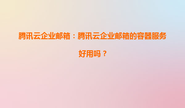 2025-04-01騰訊云企業(yè)郵箱容器服務(wù)深度解析:優(yōu)勢與應(yīng)用場景 一、騰訊云企業(yè)郵箱的核心競爭力 作為國內(nèi)領(lǐng)先的云計算服務(wù)商,騰訊云企業(yè)郵箱依托騰訊生態(tài)體系構(gòu)建了三大核心優(yōu)勢: 億級用戶驗證的穩(wěn)定性...
