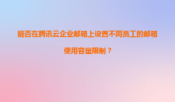 2025-11-21騰訊云企業(yè)郵箱:靈活配置員工郵箱容量限制的解決方案 一、騰訊云企業(yè)郵箱的核心優(yōu)勢(shì) 騰訊云企業(yè)郵箱作為國(guó)內(nèi)領(lǐng)先的企業(yè)級(jí)郵件服務(wù),憑借其高可靠性、安全性和靈活的權(quán)限管理能力,成為眾多企業(yè)的首選。主...