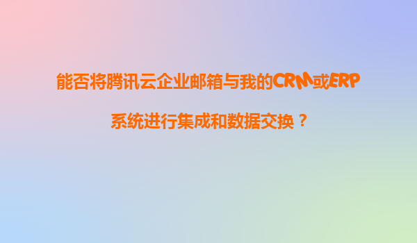2025-11-20騰訊云企業(yè)郵箱與CRM/ERP系統(tǒng)集成的可行性 騰訊云企業(yè)郵箱作為國內(nèi)領(lǐng)先的企業(yè)級郵件服務(wù),提供了豐富的API接口和安全穩(wěn)定的數(shù)據(jù)交換能力,能夠與企業(yè)常用的CRM(客戶關(guān)系管理)或ERP(企業(yè)資源計劃...