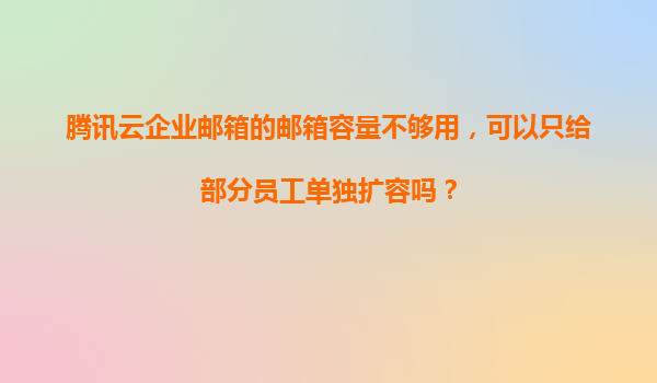 2025-11-19騰訊云企業(yè)郵箱容量不足?靈活擴容方案解析:如何為部分員工單獨擴展 一、企業(yè)郵箱擴容的痛點與需求 隨著企業(yè)數(shù)字化轉(zhuǎn)型加速,郵件往來日益頻繁,騰訊云企業(yè)郵箱默認容量(如基礎(chǔ)版2GB/賬號...